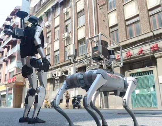 智能机器东谈主和机器狗排查上海大楼外墙安全隐患。杨建正 摄