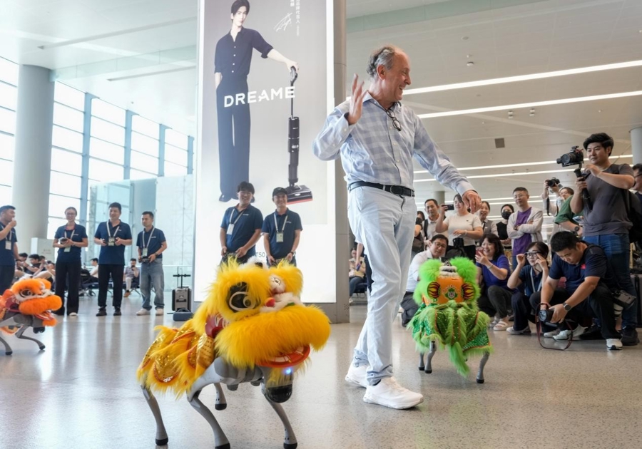 机器狗在快闪活动上与东谈主共舞。新民晚报记者 陈梦泽 摄